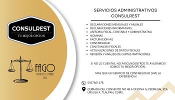 SERVICIOS ADMINISTRATIVOS CONSULREST es una empresa de consultoría dedicada al asesoramiento y asistencia en todos los procesos y niveles de su empresa.